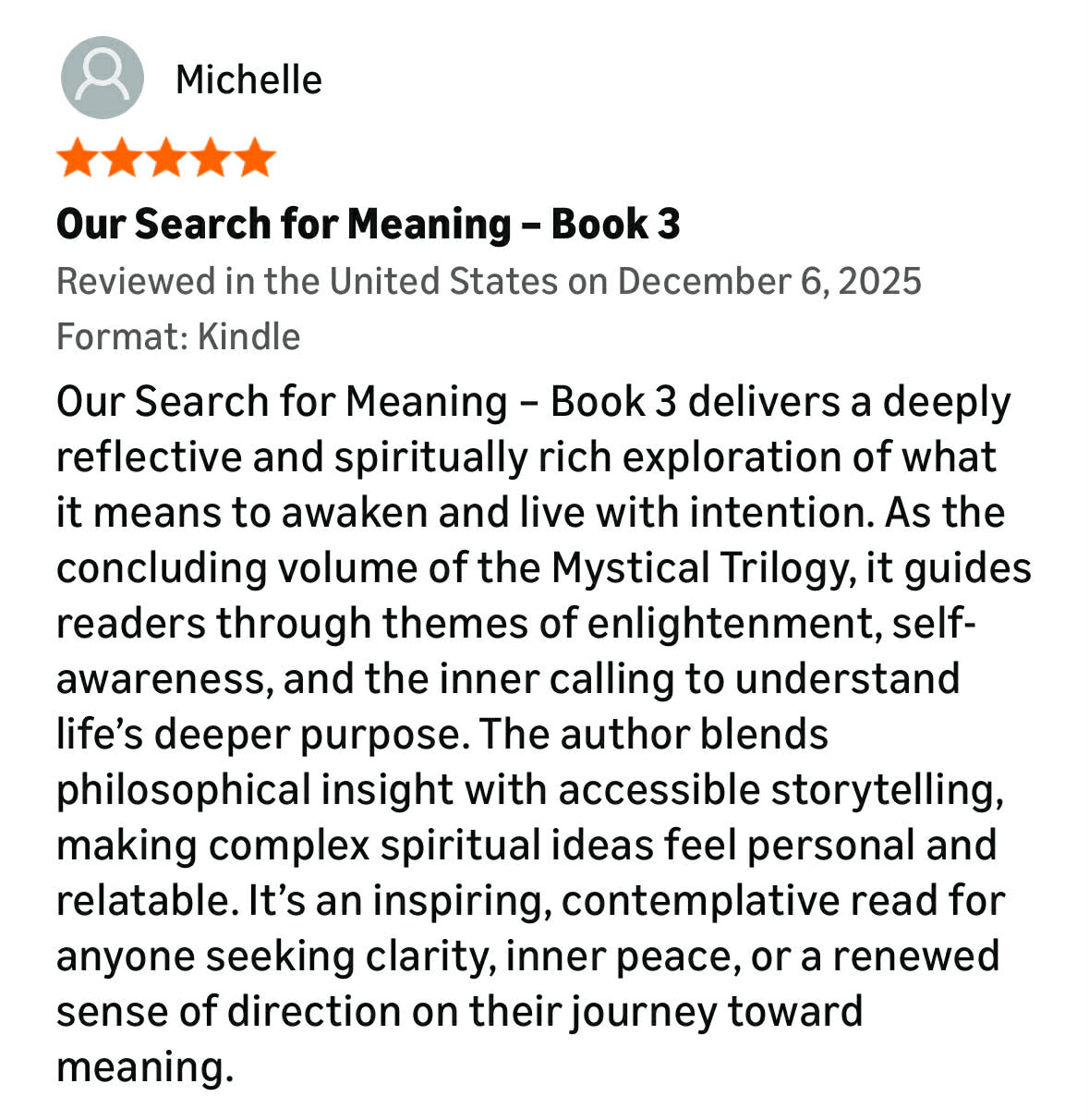 OUR SEARCH FOR MEANING is a series of three books of thoughtful easily understandable spiritual reflections about awakening, enlightenment, & the meaning of life.